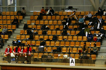 そして応援団。少数ながらギャラリーの一番前で、しかも立ったままスティックバルーン+声援を送ってくれた。伊丹にも応援団はいたが、今回はギャラリーの後方におり、スティックバルーンを普通に叩くという… この差は意外と大きかったかも。こんな感じ(左手前がRI東北、右上が住電伊丹)