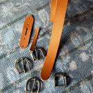 ベルト用の革、サルカワ、バックル用の留め革のセットです。3センチと4センチをご用意いたしました。色は3色。黒、チョコ、茶。是非オリジナルベルトを作ってみてください。