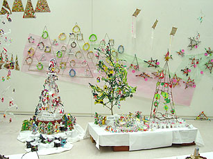 幼稚園や保育園の子どもたちに人気があったのが,自分たちがつくったというクリスマスにちなんだ工作のいろいろ。とくにクリスマスツリーというのは,つくるのも見るのも子どもたちのイマジネーションを刺激するものらしい。そういえば,大人でもクリスマスツリーをいろいろ考えながら飾るのは楽しいもんだね。